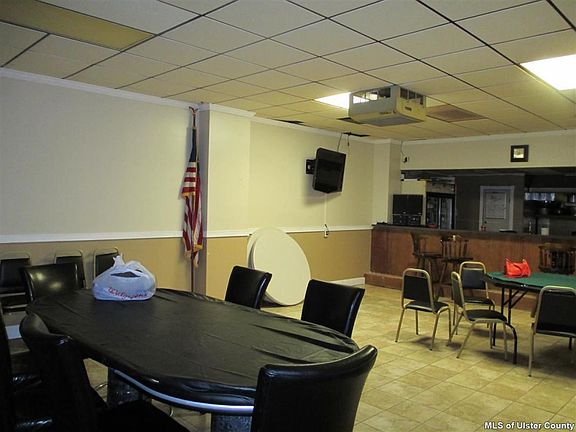 The current use is a private social club. Working kitchen with gas stove, industrial fridge. Wet bar, that seats approx. 10 to 12 guests. 2 Baths ( guys and Gals). New ceramic tile floor through out. Updated heating system. Possibility are endless, could be a catering headquarters. Continue with a private social club. This is one large open room with separate storage areas. Total sq. ft. is approx. 1276. This is only 2 blocks from the River.