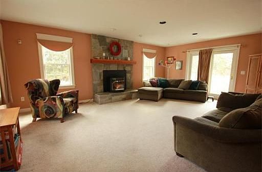 Must be sold! Extraordinarily bright & sunny contemporary Colonial in great condition. Located on a dead-end street, close to to the center of Hatfield w/over 3500 sq.ft of living space featuring 4 bdrms, 4 full baths, 2 staircases, level& open yard with above ground pool, central air, master suite, eat-in-kitchen, formal dining room, office/family room w/ fireplace/pellet stove. 4th bedroom with bath ideal au-pair suite or for extended family member. Much attention to detail!