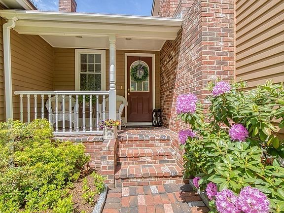 Lovely colonial situated on a large beautifully landscaped lot on a small cul-de-sac, peaceful location abutting conservation land! You will be wowed as you enter to find a sun filled bonus room with beamed cathedral ceiling, sky light, woodstove, ceramic tile, built-in cubbies and a slider leading out to the back yard. Eat-in kitchen with white cabinets, stainless steel appliances. Light and bright living room with gorgeous brick mantel and fireplace. Spacious formal living room leading to a dining room with large picture window overlooking the backyard. Half bath with laundry rounds out the first floor. Primary bedroom features a walk-in closet, office space and private bathroom. Two additional spacious bedrooms with ample closet space and a full bath. Partially finished basement offers additional guest space, home gym, office and more! Outdoor space perfect for summer entertaining. Deck overlooking pool, fire pit and beautiful landscaping. This is a must see!