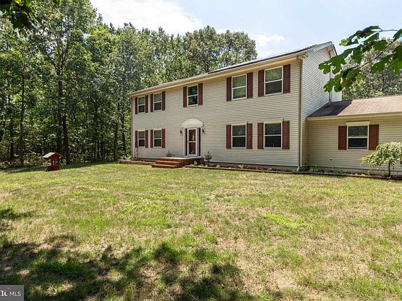 Large two story home on a private wooded 2.78 Acre corner lot. Eat-in kitchen with stainless steel appliances, double sink, pantry closet, recessed lighting and ceiling fan. Kitchen opens up to family room with laminate flooring, free standing gas fireplace and ceiling fan. Half bath and laundry off of kitchen. Formal dining room and formal living room also on the first level. Spacious bedrooms upstairs, master bedroom has walk-in closet. Master bathroom has a stall shower, garden tub and double vanities. Full basement with bilco doors, 200 amp electrical service, rear deck, two car attached garage with auto door openers, shed. Solar panels provide nice savings on monthly electric bill. Natural gas heat and two zone central air. Three miles from Silver Run Elementary School. Easy access to Routes 47 and 55 and all shore points. 2021-04-02