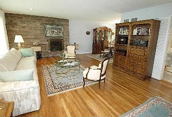PERFECTLY MAINTAINED HOME W/ SUN-DRENCHED RMS and MANY IMPROVEMENTS THRUOUT. UPDATED EIK, HW FLOORS, NEW WINDOWS. PARK LIKE REAR YARD.GROUND LEVEL SIDE ACCESS TO IDEAL IN LAW SUITE. SCHOOL BUS IN FRONT 1st level features sweeping formal LR w/wood-burning fireplace; formal DR w/sliding door to elevated rear deck; updated EIK w/new granite counter tops. Hardwood flrs in both LR and DR recently refinished. 2nd level includes master suite w/large BR and private full bath; 2 add'l BRs each w/large closet; full hall bath; and center hallway w/ two closets. Lower level offers spacious family rm w/sliding door to rear patio; office; foyer/sitting rm; sewing/storage rm; powder rm; inner hallway; and entry vestibule from driveway. The basement level contains a large, unfinished storage rm w/tall ceiling and laundry.