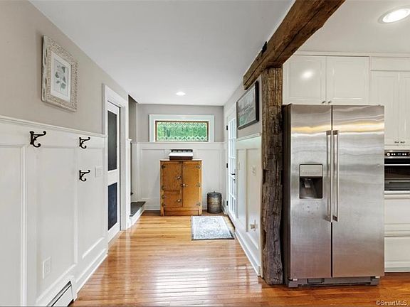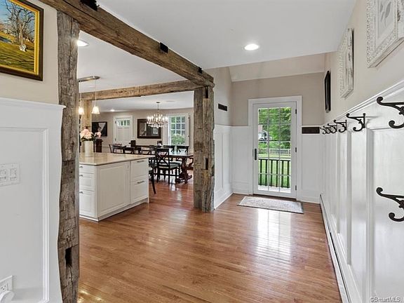 Welcome home to 6 Deer Run! This meticulous home has much to be desired, with a craftsman's eye for detail. Step inside to be greeted by a bright and inviting kitchen framed with beautiful hand-hewn wood beams. Remodeled in 2016, this kitchen features stunning Quartz countertops, stainless steel appliances, and a farmhouse sink. Equipped with a pot filler faucet above a gas cooktop, stainless steel stove hood, automatic lights in the kitchen drawers (those details we talked about!), this breathtaking kitchen is not only gorgeous but extremely functional! Perfect for entertaining, the kitchen is open to a large formal dining room with ideal space for hosting. Surround sound and gleaming hardwood floors complete these two rooms. Head to the formal living room to unwind and cozy up near the wood stove set into a spectacular stone fireplace. Wide plank pine floors and attractive vintage built-ins create a look in this room that is hard to find! Separated by French doors, the sunroom boasts a shiplap cathedral ceiling with an exposed brick chimney. This room is perfect for kicking your feet up and enjoying the view. Moving upstairs, along with 3 bedrooms and 3 full bathrooms, youll find more magnificent wide plank pine floors. At the top of the stairs, you will find a large bedroom with its own full bathroom, featuring a stand-up shower and more beautiful, distressed wood finishes. Head down the hall to find the second full bath and second bedroom.