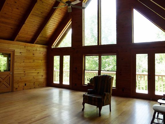 Large Log Home with a lot of potential. Makes a great mini farm. 2 stall stable, barn and lots of pasture. Owners started to make some changes and work on the home but life took a different path. Heat and air system replaced in 2015 Fronts 626' on Wide Young Cane Creek. Property is Fenced. Second Kitchen in the lower level. Could be mother in law suite. Home needs some additional work done. Furthest part of property from house fronts Hwy 515. 3.02 acres with house has restrictions, rest of land does not.
