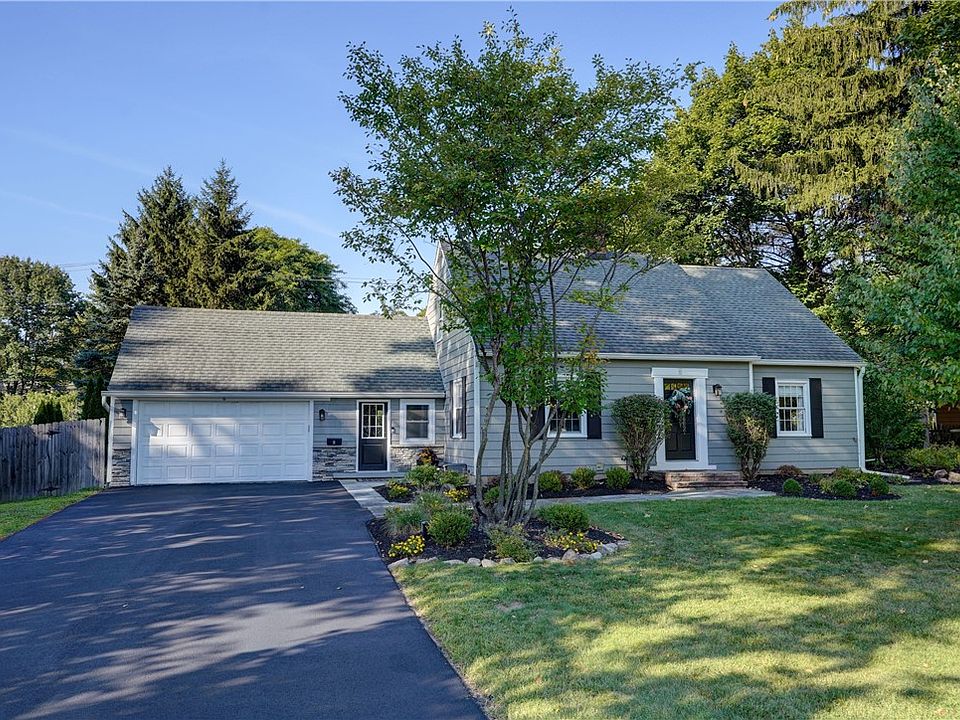 IMPRESSIVE CAPE***This GEM is located in the heart of Penfield***Beautifully maintained, and well cared for*Home features 4-bdrm, 2 FULL BATH, 2 car garage nestled on a spacious .36-acre lot*1866 square feet of living space, this home offers comfort, charm, and many modern updates throughout while preserving it's timeless character*Expansive heated breezeway perfect as a flex space or sunroom-leading into a home filled with gorgeous hardwood floors throughout(some)*Stunning kitchen features a stylish backsplash, vaulted ceilings, recessed lighting and skylights that flood the space with natural light*Relax in spacious yet cozy family room with a charming decorative fireplace & built-in shelving creating the perfect ambiance to unwind*First-floor laundry room adds convenience and functionality*Outside offers nice size deck overlooking private fenced in yard, ideal for gatherings, gardening, or simply enjoying nature*Pristine condition***True pride of Ownership***OPEN HOUSE 09/20/2025 1-3PM*Delayed Negotiations begin Monday September 22nd at 1pm.