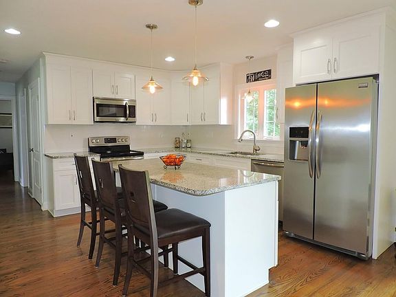 - Kit Dscrp: Flooring - Hardwood, Countertops - Stone/Granite/Solid, Kitchen Island, Stainless Steel Appliances, Open Floor Plan, Remodeled