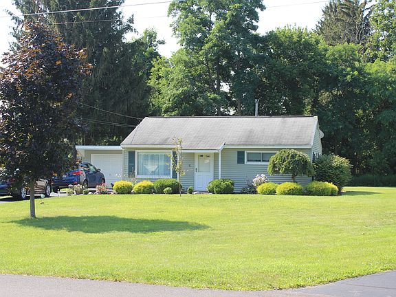 This cute 2-bedroom, 1 bath beautifully landscaped ranch in the Village of North Syracuse has a three-season room with a great patio and a large backyard; perfect for entertaining. The back of the property is edged with wooded border. It has a Brand New Roof! The newly painted interior has an eat-in kitchen with built-in shelves and pantry has an open floor plan into living room. It has a 1 car garage and shed. It has upgraded sound-proofed windows, doors, and insulation. House is handicap accessible, with ramp in three-season room and bathroom with an accessible walk-in shower. Has central air/heat. House is wired for Spectrum, Verizon and Direct TV. Great location in quiet neighborhood, with easy access to I-81, 481, and the Thruway. Close to the airport, Destiny Mall and Onondaga Lake Parkway. Call (315) 380-0784