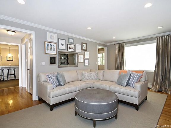 Move right in to this warm and inviting 4 bedroom, 2.5 bath center hall Colonial. Ideally situated on a quiet cul-de-sac street on the Norwalk/Wilton line, this classic home has everything you need. Step inside to a gracious foyer that leads to the sunlit front to back living room with fireplace and formal dining room. The bright and spacious kitchen features granite countertops, a breakfast bar, butlers pantry with wine refrigerator and stainless steel appliances. Sliders lead to the deck which is perfect for entertaining on summer nights. The cozy family room off the kitchen is ideal for relaxing and unwinding after a long day. Upstairs the master bedroom suite has a walk in closet, en suite bathroom and hardwood floors. Three additional good size bedrooms with hardwood floors and a full bathroom complete the second floor. The attached 2 car garage enters through the lower level and offers easy access and a mudroom area. Outside, enjoy the landscaped yard, perennial gardens and beautiful stone walls. Convenient to shops and restaurants and a short walk to historic Cranbury Park, with over 200 acres of wooded trails and fields. Don't miss this beautiful home