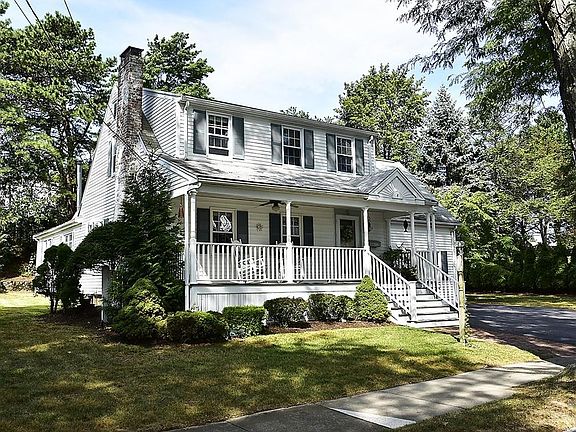 Rare chance to own in Robin Hood School district. This 8-room expanded Cape with farmers porch is on one of Stoneham's loveliest tree lined streets just steps away from Unicorn Golf Course. Hardwood floors throughout. First floor offers living room with crown moldings and fireplace with built-ins, dining room with corner built-in cabinet, large eat-in kitchen with quartz counter tops and SS appliances. Downstairs full bathroom includes a washer dryer combo. First floor family room has a soap stone wood stove. Off the family room is a 3 season room with a propane stove to enjoy family gatherings. This unique layout has great potential for an in-law suite. Four bedrooms are on the second floor along with another full bath. Spacious Master Bedroom has french doors that lead to a balcony. The private back yard has a deck & patio area with a large storage shed. Basement has a ½ bath and additional washer and dryer. Easy access to Routes 93 & 95 - minutes to Boston.