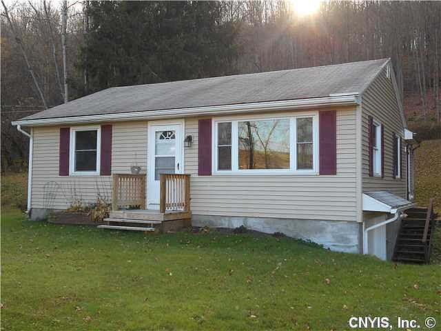 Make this cozy 2 bedroom ranch style home your own. The stairway into the basement from the kitchen was closed off and tiled making the eat-in kitchen larger. New cherry cabinets were added to the kitchen along w/ a new countertop. The mudroom/entrance/laundry room was added on with water and electric hookup. Enjoy BBQs on the 9x12 back deck in your private back yard. The bathroom has been remodeled w/ new plywood floor covered with wood laminate and new toilet. Marathon electric/radiant & water. All the appliances convey. Convenient to Ithaca, Bing. & Syr. Taxes DO NOT incl Star exemption.
