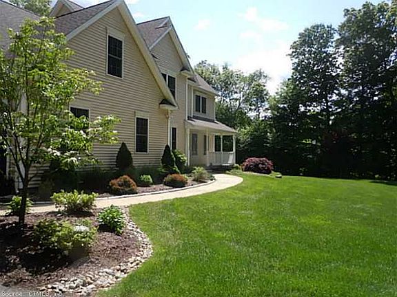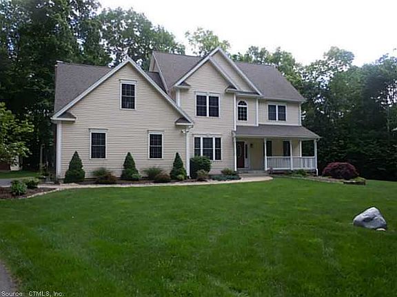 Terrific 4 BR Young Colonial situated only 20 min to Hartford, UCONN & EastCONN! A quiet country road will bring you home to this lovingly maintained home offering loads of amenities! Set back on a lovely wooded lot, in a quiet neighborhood setting, you will appreciate the hardwood floors, bright and open floor plan, modern stainless & granite kitchen, generous room and closets sizes, and an amazing LL rec area ideal for home theater, with a bar and risers for stadium seating! Wired for generator, attention to extra insulation for energy efficiency, underground sprinklers, security system and more!