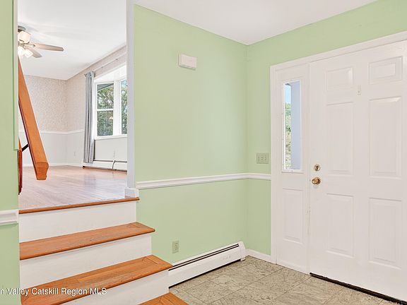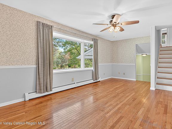 Discover the potential of this charming home located in the heart of Red Hook, NY. Ideally situated on a desirable corner lot, this 3 bedroom, 3 bathroom home provides endless possibilities to create your dream haven. This classic split level offers a perfect blend of comfort and style. As you step inside, you're greeted by the warmth of gleaming hardwood floors that flow throughout the spacious living areas. Large windows flood the space with natural light, creating an inviting atmosphere. The living room has a classic wood-burning fireplace, ideal for cozy evenings with family and friends and French doors which lead to the back patio in a fully fenced yard.