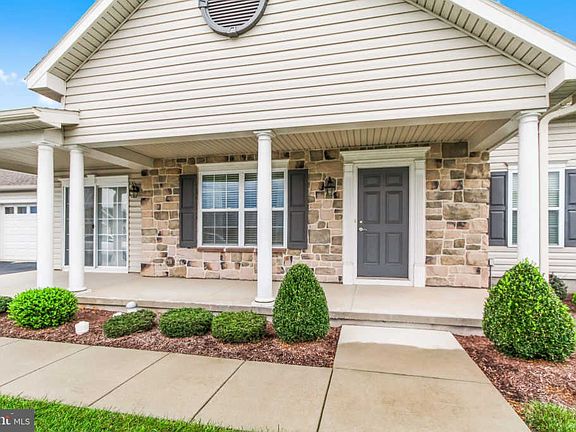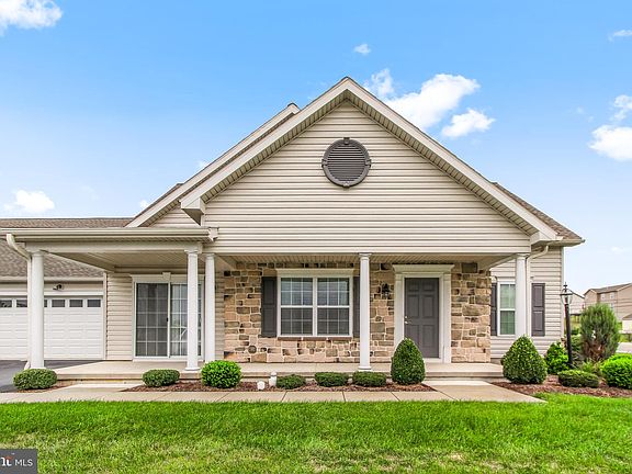 Here it is! A home you can live in ~step free~ with room to spread out and top shelf amenities. This home has 3 bdrms, 2 ~ baths, 1st floor laundry, 1st floor master bedroom, huge 2 car garage and is immaculate! There is a second floor where the 3rd bedroom and bath are but it can be a rare trip to that level if you want. A former builders~ model this home showcases 10ft try ceiling in living room w/ recessed lighting, 9 ft ceilings on first floor for lots of light, Gleaming Hardwood Floors, Granite kitchen Counters, S/S Appliances. Home features a covered porch off of dining area ~ great spot for a caf~ table and chairs. Now here is the really good stuff ~ NO YARD WORK*NO SNOW SHOVELING*NO WEEDING*no worries about exterior of home ~ all taken care of by the HOA w/ a very reasonable fee. Smart location with a country feel just minutes to shopping in either York or Hanover plus cute shopping area just down the street for groceries and pharmacy.