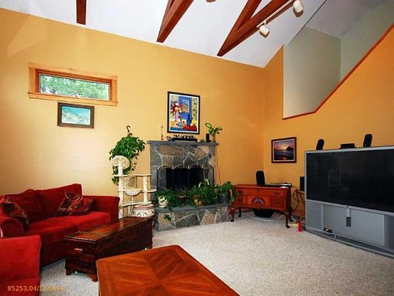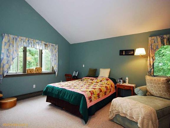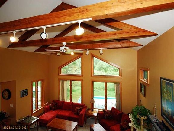 Cathederal ceilings with open design, light filled interior, updated kitchen, fieldstone wood burning fireplace, daylight walk-out lower level ideal for guest or in-laws with full bath, well landscaped country setting.
