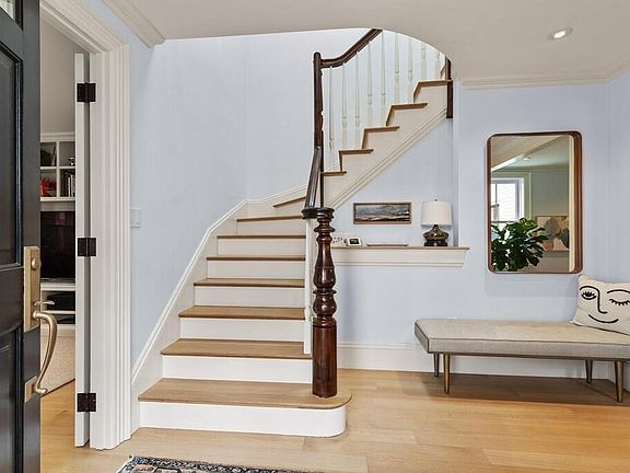 OBSERVATORY HILL STUNNER. Less than a mile to Harvard Sq, this classic New England home blends the best of traditional attention to detail with a beautiful modern floor plan. Built in 2017 by a well-respected, Cambridge-based developer, this spacious sunlit home offers state-of-the-art energy efficiency with solar rooftop panels, electric car charger, mini-split HVAC system, & tankless hot water. The L-shaped floor plan includes living rm with gas fp & a bright white kitchen with top-of-the-line Miele appliances & a reverse osmosis water system. Private library/den accessed through French doors completes this level. Upstairs are 3 bedrooms with soaring ceilings, including primary with en-suite marble bath & twin balconies for morning coffee or quiet reading. Fourth bedroom on the lower level with private entrance & full bath. Also on the LL is a media room, workout area, & additional space. Beautifully landscaped with private enclosed back yard and 1 car garage plus off-street parking.