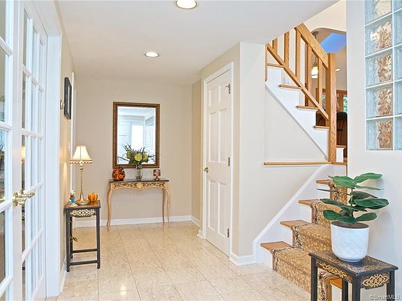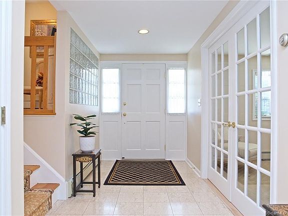 A steal of a price, 6 Douglas is a tastefully-expanded split in a desirable quiet West Norwalk neighborhood. The impeccable maintenance shows immediately from the new Belgian block-accented driveway, to the mature plantings on this park-like acre of land. Entering, you are greeted by a marble foyer that has French double-doors to a living room with working fireplace. On this same level, there is a bonus room and full bath that leads to a two-car garage, that can be a first-floor in-law apartment or nanny quarters, if needed. There is a full basement down one level, with full laundry room, cedar storage closet and mechanicals that are all newer. The main living space is what really stands out, with a living or dining room with hardwood floors, cathedral ceilings and a bay window, open by two large entrances to another impressive room, the kitchen. The kitchen has a large granite island/breakfast bar meant for a king, with stainless steel appliances, Subzero fridge, propane cooktop, and more cabinet and counter space than you can imagine--all with cathedral ceilings and skylights to make this space incredibly bright. Out to the large, Trex deck, you get a great view over your flat backyard, and heated, in-ground pool and fully fenced back yard. There are three large bedrooms and a huge master suite with double walk-in closets and an updated master bathroom. Full house propane generator, central air, track lights, and so much more (See additional remarks). Tax card lists as 1803 square feet, but that doesn't include raised basement with 725 square feet, and an actual basement with 509 square feet according to Vision Govt Solutions tax information. Total gross square footage is 4102. Home has had many additional features including: Retractable awning, newer mechanicals, propane hookup for gas grill, heated garage, attic space for storage, Thermopane windows, double sink in master bath, marble shower, cedar closet in basement, invisible fence, and more.