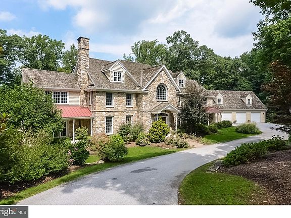 Nestled in a beautiful cul-de-sac of Chester Springs, 6 Douglass Lane is located in the highly desirable Douglass Lane subdivision?consisting of 9 custom-built Birchrun Builders homes. This elegant custom-built traditional farmhouse has 7600 sq. ft. with an additional 2500 sq. ft. of finished basement space, and is located on 5.5 acres. Seclusion and privacy underscore this 5-bed, 6.3-bath, and 3-car garage home. Enter through a spectacular two-story foyer with an arched clerestory window, grand floating staircase, wainscoting, and beautiful hardwood floors with walnut inlay borders. To your left is a formal living room with a gas fireplace and to your right a formal dining room with wainscoting and beautiful crown molding. The front of the house has two additional side entrances that lead to an open floor plan with a gourmet kitchen, breakfast room, cafe, great room, formal office, music- room, mudroom, screened-in-porch, and two half baths. The gourmet kitchen reflects the taste of today's discriminating buyers including: granite countertops, built-in Sub-Zero refrigerator, Thermador commercial cooktop oven, custom-made hood, double sink, Bosch dishwasher, cherry QualityCabinets with a built-in pantry and hutch, a second oven built into the kitchen island. Two skylights provide plenty of natural light and the tile flooring gives the kitchen a warm feel. Adjacent to the kitchen is a fully equipped QualityCabinet butler's pantry, along with a fourth pantry space. A delightful caf~ with granite countertops, a hand-hammered copper sink, built-in Bosch microwave, dishwasher, and beverage center is right off the kitchen, and leads out to a weather-resistant, maintenance-free, Trex Composite Deck?all designed for great entertaining! Cathedral ceilings, skylights, a full-stone masonry wood-burning fireplace, and QualityCabinets built-in entertainment center with a wet bar, cast-iron sink and granite counter define a fabulous step-down great room. Walk through a cozy music room and enter a relaxing screened-in-porch with a decorative batten board ceiling. The formal office is a distinguished workspace with stained-wood molding and windowsills, and crown molding and a patio. A spacious mudroom with Quality Cabinets, Corian sink, double-stacked washer and dryer, along with two additional powder rooms complete the main level. Please see "tour" for cont. description.