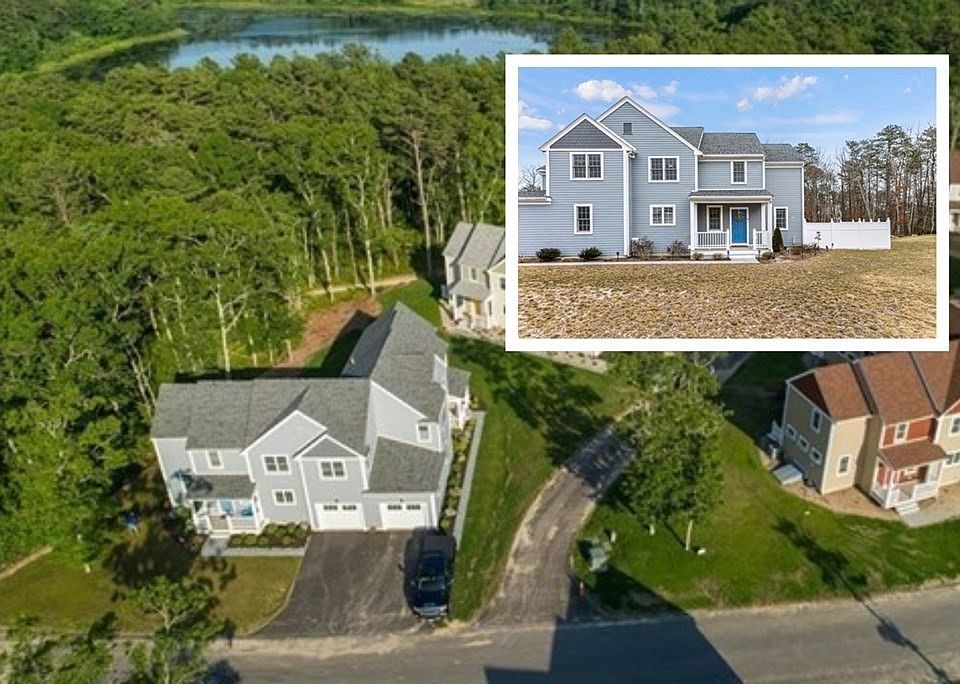 Sawmill Woods former model newer construction condo located at The Village at Sawmill Woods which is a 58-acre site of a vibrant new 200-home community in historic Plymouth, nestled between Shallow Pond and the vast conservation land of the Briggs Estate. Short distance from waterfront, beaches, area golf, dining, Pinehills amenities and approximately 5O miles from Boston, 15 minutes to the Cape Cod Canal. Realize your dream to reside on a wooded lane in a charming, beautiful & energy efficient 3-bedroom two-and-a-half bath new construction home with one-car attached garage parking. Upgrades in unit ~ gas stove, stainless steel appliances including fridge & first-floor washer & dryer, granite counters in kitchen and bathrooms, under cabinet lights, chair rail on first floor, hardwood stairs, Primary bedroom with full bath/glass shower door & double sinks, private outdoor space with patio, privacy fence. Cement board exteriors, Central air, 200-AMP service, Mid April closing or later.