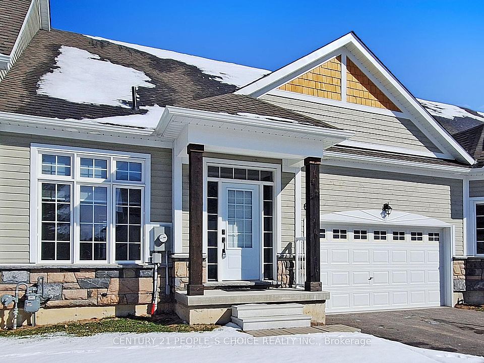 Exceptional Bungalow in a Prime Bracebridge Neighborhood! Discover this stunning 1513 sq. ft. Redwood Model townhouse, 36 Feet Frontage, located in the exclusive Waterways private community of Muskoka. Featuring 2 bedrooms and 2 bathrooms, this 2022 built home is fully upgraded for modern living. Over $65,000 in Upgrades! Enjoy a gourmet white kitchen with granite countertops, S/S appliances, soft-close cabinets, and a center island. The spacious dining area opens to the backyard, perfect for entertaining. The Great Room boasts soaring Vaulted ceilings, Pot Lights, and a Muskoka granite gas fireplace, creating a warm and inviting atmosphere. The master bedroom features Vaulted ceilings, a walk-in closet, and an ensuite bathroom. Natural light floods the home through large windows, offering a bright and airy feel. Conveniently located within walking distance to Annie Park and Muskoka River, just a short drive to restaurants and amenities, this home combines comfort with accessibility. The exterior offers 1.5 garage with extra space for storage and level entry into the home. Waterways community members have access to Muskoka Riverfront as part of Common Elements which also includes snow plowing, grass cutting / landscaping, garbage & recycle pickup - this is a freehold common element condominium with a Fee of $287.06.