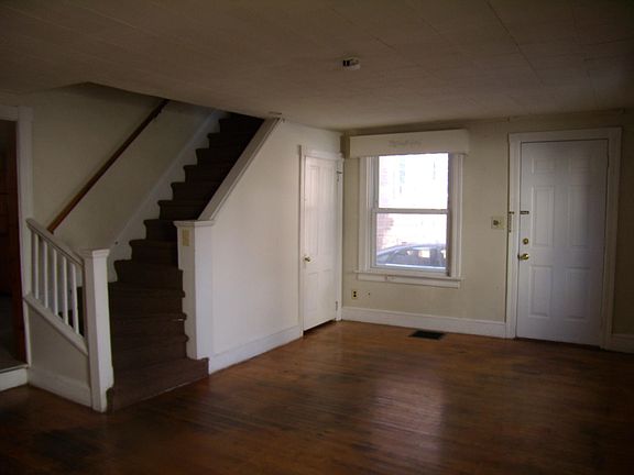 Two-story apt., end-unit. Roomy, wood floors. Huge walk-in closet. Rent includes water/sewer/trash