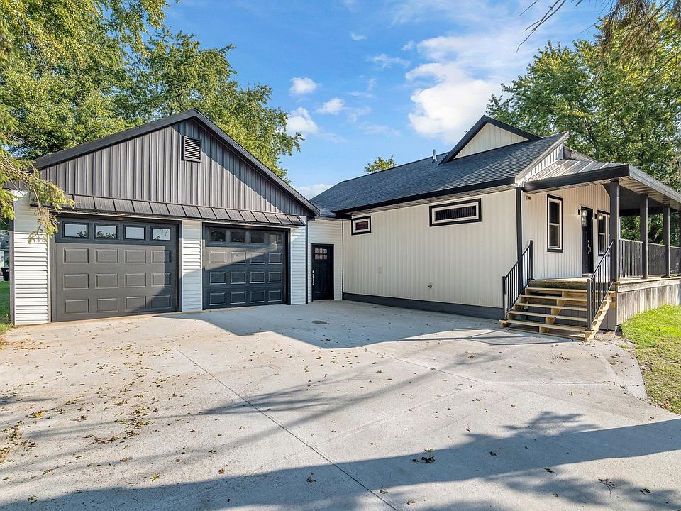 TOTALLY TRANSFORMED HOME, done right, in Hilbert from inside & out + much more!! Super spaciou lot* next to a creek & hop-skip-jump to the edge of town & the countryside. The HUGE 2.5 car, attached, garage is brand new & has high ceilings & insulated +finished off..JUST BEAUTIFUL! Walk-in the mud room area w/double closet. Open the door into the spacious living room w/vaulted ceiling, windows galore & patio doors out to a maintenance-free deck. SPACIOUS, open concept w/kitchen featuring a center island, all appliances & breakfast bar. Front room could be formal dining or home office!? 1st flr bedroom w/2 closets & farmhouse sliding door. Upstairs has 2nd bedroom loft w/skylights. OPEN staircase & buffet area. 1st flr-ldy. SUPER CUTE! *county revised it to .32 ac, not .61 as noted