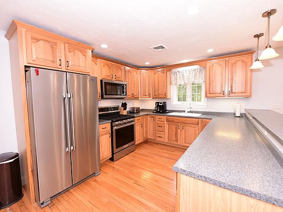Ideal Conway location for everyday or vacation living! This proud 3 bedroom, 2 bath raised ranch is situated on a level, corner lot just minutes to Conway Village, and just a hop, skip and a jump to to the wonderful sandy association beach on picturesque Pequawket Pond. The spacious main level features a stylish, fully equipped kitchen with adjacent dining area and adjoining living area with central pellet stove to keep you toasty. Also, on this level there are 2 comfortably sized bedrooms, an office/study and a full bath. French doors from the open living space open to a generous, recently updated wrap around deck with stairs to a great side yard. On the first level you will find the primary bedroom with a walk-in closet and it's own bath, an oversized shower and 2 rainfall heads. The remainder of this level consists of the utility room with all the mechanicals for the home and laundry, and three additional recently improved spaces easily ready for accommodating your individual needs. Take a look today... this might just be the special home you've been waiting for!