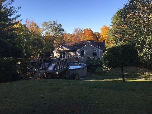 Move right into this custom expanded home on quiet cul-de-sac street within walking distance of Blue Jay Orchards in beautiful Plumtrees section of Bethel. Nature lover's retreat, just minutes to schools, shopping, restaurants and I-84. Majestically set back from road, this custom home has been transformed by current owner with features and amenities rarely found in homes of this price range. The surprise awaits you when you see the open concept living and dining area with recessed lighting, dramatic center island in kitchen with custom cherry cabinets and granite counter tops. Vaulted ceiling and fireplace in main level family room open to kitchen, Gorgeous 330 square foot master suite added in 2009 with tray ceiling, recessed lighting, sliders to deck and hot tub, walk in closet and luxurious master bath with hug shower, jetted tub, double sinks all done in imported Travertine tile. 400 square foot Trex deck added in 2009 with hot tub overlooking private fenced in back yard with oval shaped above ground pool. In addition to your two car garage with access from home, there is an incredible 648 square foot custom built two car garage added in 2009 with redwood overhead door, clear span interior, insulation and heat. Perfect for your car enthusiast, home workshop or home business. In addition to this, there is a 10'x14' storage shed, New roof and septic in 2004, central air added in 2009 and new boiler in 2019. Nothing was overlooked in renovations by current owners!