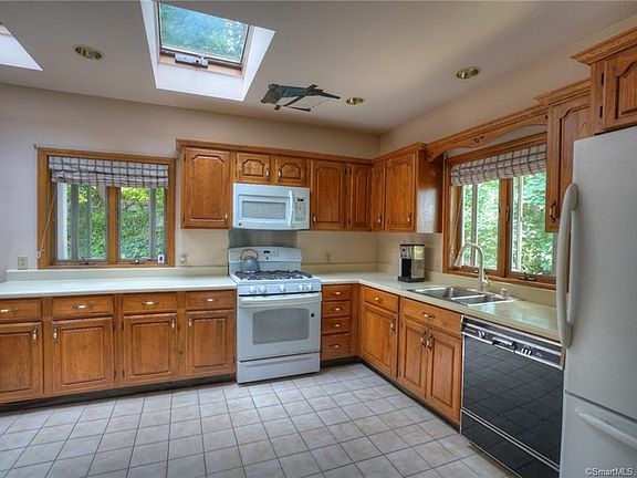 Charming Colonial home with covered porch on cul-de-sac set in the heart of Mystic. Skylights in eat-in kitchen and hardwoods in living room with fireplace. Upper level bedroom has full bath and walk-in closet. Full basement. Walk to water!.