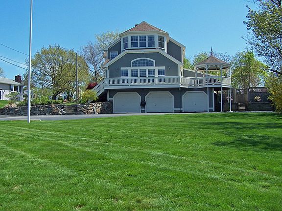 High atop Strawberry Hill, this 4300+ sq ft home affords all the amenities you could ask for and more. Located on an oversized landscaped lot with private in-ground pool and cabana with a half bath and outdoor shower. Open decks and raised gazebo provide front row seats to some of the most spectacular sunsets you will ever enjoy. The views of the bay, Harbor Islands and the Boston Skyline are breathtaking. Large windows throughout the home take advantage of the water views. Huge, luxury chef's kitchen and three season porch were added within the last two years. The stunning, two level master suite offers panoramic views and includes a bath with Jacuzzi tub, walk-in shower with multiple body sprayers, a 10' double vanity, and a 10'x14' walk in closet with cherry finishes. No detail has been forgotten--there is even a five hole practice putting green! Walk to the marina at the end of the street for easy access to your boat. Change your lifestyle for the better in this gorgeous home.