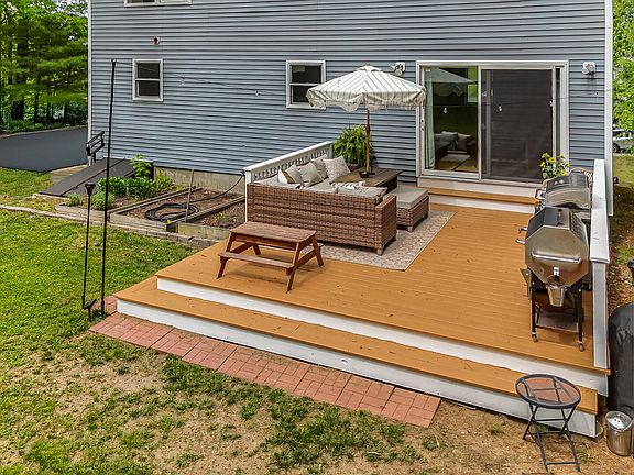 Perched on a gentle knoll and set back from the road, this delightful Cape offers both charm and privacy. Surrounded on three sides by mature trees, the backyard is a serene retreat featuring a freshly painted deck, raised garden beds, and a cozy firepit—perfect for relaxing or entertaining.