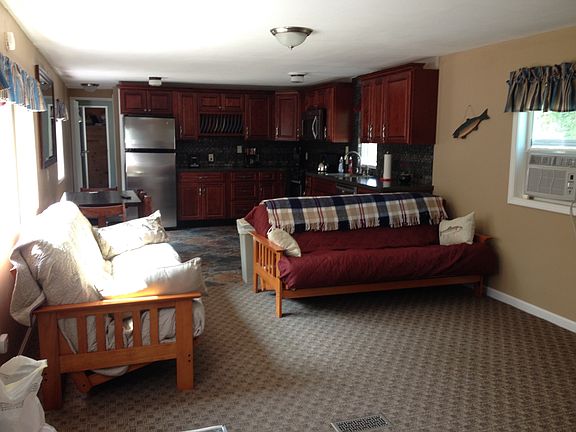 Furnished home or camp with deeded boat slip at Rieters Marina. Home has had many updates - including kitchen, flooring, sheetrock, lighting, windows, siding plus drilled well & pump. This year round home is move in ready with all appliances & furnishings included. Large yard with front porch, deck, fire pit & sheds. Deeded boat slip at Rieters costs only $25 per year, giving you prime access to North Pond & Lake Ontario!