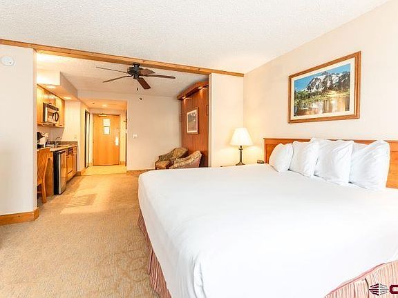 Emmons Suite in the East Tower of the Grand Lodge. Featuring a king bed, full bath, kitchenette, plus king Murphy bed and new carpet, paint & curtains. The second floor location is pet friendly for owners and guests, accommodates up to 4 people and produces strong rental income. Extensive hotel amenities include pool, hot tub, workout facilities, ski valet, restaurant, meeting rooms, and front desk. Walking distance to the slopes and bus stop right across from the building. Great opportunity to own in the heart of Mt. Crested Butte ski village!