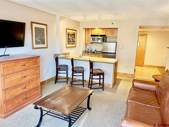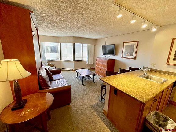 Located directly in the Mt. Crested Butte base area with beautiful views to the west and of Mt. Crested Butte. Just steps away from the bus stop and restaurants with great amenities. Enjoy the lobby fireplace surrounded by luxurious woodwork and stone, restaurant and retails shops. Indoor/outdoor pool and hot tub on patio with fire pit. Homeowners have the convenience of privately reserved ski and snowboard storage slope side and on-site athletic facilities. Great Crested Butte real estate investment potential with the Lodge at Mountaineer Square Conference Center next door! The spacious one bedroom has a king bed and full bath and the living area has a queen murphy bed and full one bath. New curtains, paint and carpet.