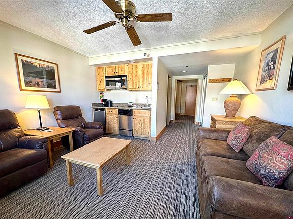 Excellent top floor King Suite in the West Tower! Beautiful views to the north and east including Mt. Crested Butte. Floor plan offers privacy doors to close off the bedroom from the living area and features a kitchenette, king bed plus sleeper sofa, full bath, two flat screen TVs, two reclining chairs, new carpet and paint. Hotel amenities include hot tub, indoor/outdoor heated pool, spa, restaurant/bar and lobby shop. HOA fees cover all utilities, amenities, and common area maintenance. Walking distance to the slopes and free shuttle to downtown located right across from the building! Enjoy the convenience of this turnkey condo located in the heart of Mt. Crested Butte's town center with close proximity to the lifts, transportation center, restaurants and shops.