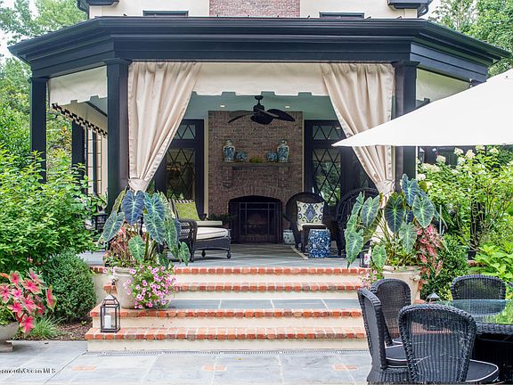 From the elegant wood trelliswork at the front gate to the sprawling grounds, this property has something special to offer. Tasteful renovations were made while keeping the historical integrity of the house. The family room is a showstopper - windows line the room, illuminating it with natural light. A fireplace sits on the opposite wall, on which either side are French mullioned doors leading to the outside porch and veranda. The canopy-covered porch features an outdoor fireplace - an ideal setting for socializing or relaxing. The dining room embodies the elegance of another era and is perfect for entertaining. A white gourmet kitchen boasts every possible upgrade including marble counter tops and a butlers pantry.