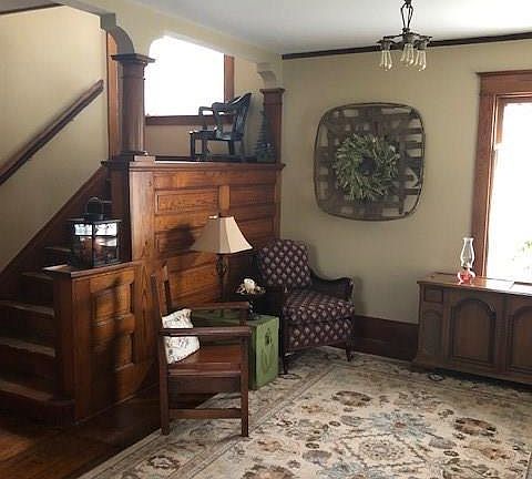 This beautiful, bright, century home is ready for you to move in! The formal dining room and double living room make great indoor entertaining spaces along with a huge hickory kitchen and basement rec room. Meanwhile the stamped concrete pad, and composite deck overlook a backyard paradise, above ground pool, and custom fire pit. Or you can relax on the covered front porch overlooking a quiet tree-lined street. There's loads of storage in the shed and detached garage. Many of the rooms inside have been recently painted.