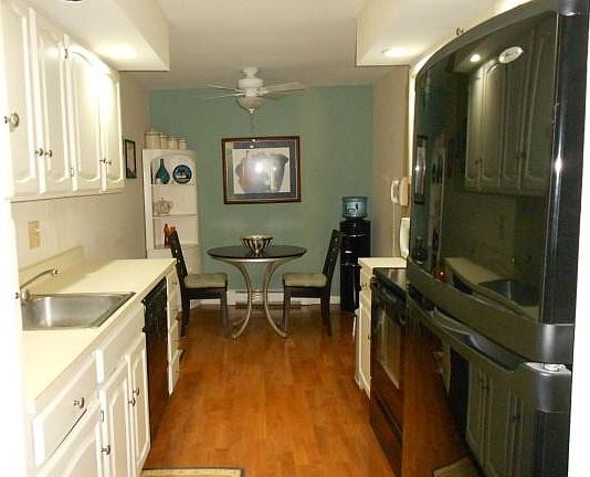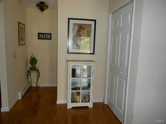 Enjoy maintenance free living of a condo, w the feel of a free standing home. Spacious one bdrm, 1 1/2 bath unit has beautiful open floor plan, & its own priv entrance. Kitchen has a breakfast nook, & there is a lg separate dining room as well. Din rm is open to large bright liv rm, w sliders out to deck. Many nice upgrades, including all wood interior doors, beautiful hardwood floors throughout , & updated bath w relaxing soaking tub. In unit laundry w lg adjoining storage closet. Great storage space, as well as secure basement storage. Heat & hot water are included in common fees. Rollingwood is a well maintained centrally located complex, convenient to everything. This elegant unit is a must see!