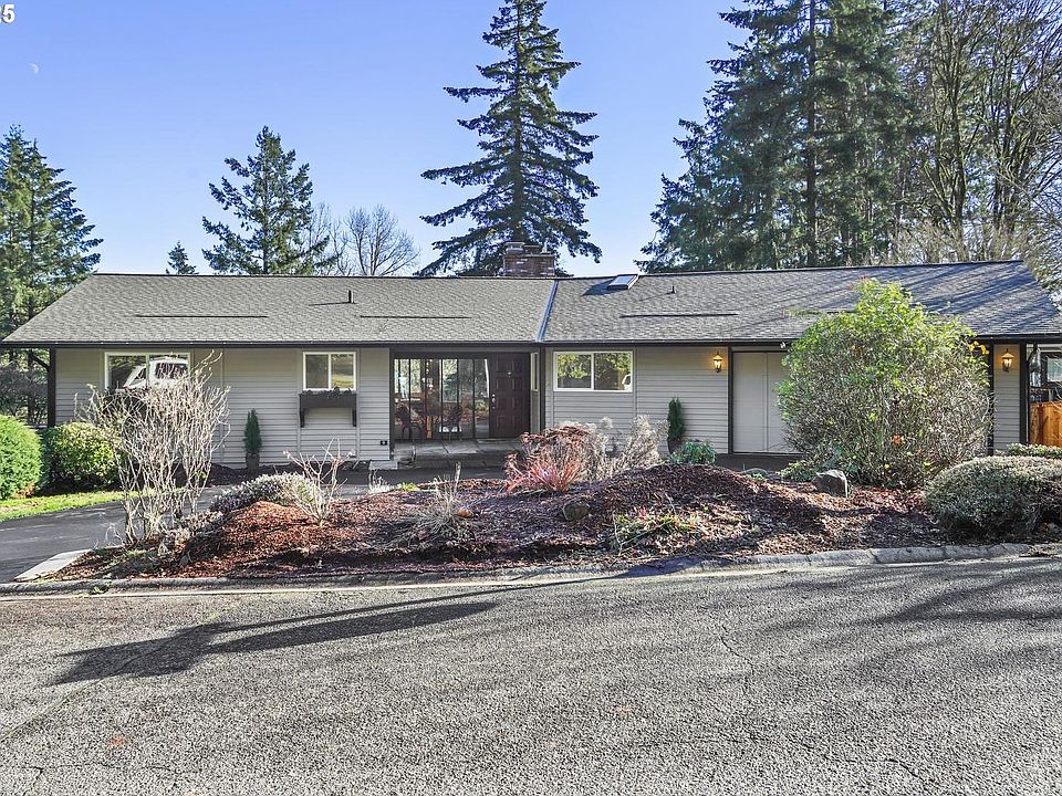 Fantastic Daylight Ranch home that has been substantially updated throughout & offers a great value for the size & main level living in a convenient area of Lake Oswego. Located on a quiet cul-de-sac, in a wonderful neighborhood, convenient to award winning schools, parks and commuting. Circular driveway leads to stunning entryway finished with cool mid-century details. Main level living with primary suite + second bedroom/office on main level. Spacious living room with fireplace enjoys a territorial view over the neighborhood and large, updated kitchen opens to dining area with access to large covered deck. Downstairs, there are three more big bedrooms, large family room with fireplace and access to patio and backyard, and second full kitchen and laundry area! Great opportunity for separate living quarters or just generous living space. Mountain Park HOA dues of $596.94/ 6 months= less than $100/month for gym membership, fantastic aquatics center, clubhouse and maintenance of walking paths to parks around the area!! OPEN SUNDAY 10/12, 1pm-3pm!