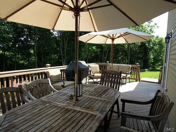 Beautiful Mallett Farms is the setting for this lovely Colonial w views of Tashua Recreation area ball fields & seasonal golf views. HW floors on main level. Young kitchen with granite and SS appliances, breakfast bar plus large dining area. *Pantry could be laundry with rough plumbing installed. Formal dining room with tray ceiling. Cathedral ceilinged Family room with fireplace and French doors to new huge Trex deck. The master has a tray ceiling, generous sitting room and large walk in closet. 3 bedrooms, all with double closets and a full bath complete this area. Walkout lower level with sliders to patio. New furnace, hot water heater and air conditioner. The Association maintaines the roads/cost per homeowner is $1000/year.