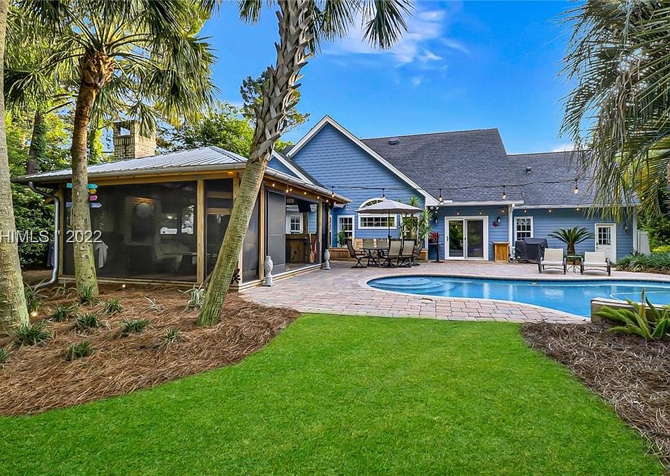 DON'T WAIT! This is a Lowcountry unicorn! Situated on a 0.5 acre of night-lit mature Oaks and lush landscaping. Not a single inch of this home has gone untouched- even auto irrigation drips to potted plants AND on the pavilion roof to simulate the Southern "rain on a metal roof" sound. Incredible upgrades and features such as; a Heated/Cooled SaltWater pool (newer systems/pumps) surrounded by beautiful pavers, a screened party pavilion with wood burning brick fireplace, Fridge, 4 large Tv's, Fenced Yard, Smart Home Enabled/Security Cameras, Newer Roof, HVAC, Epoxy Garage Floors, AND aprox.700sqft of walk-in attic storage/easy to finish space.