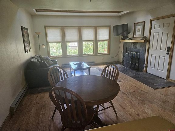Don't miss out on owning a Ferringway Condo. They rarely come on the market. This two bedroom two bath condo offers beautiful views to the north from living room and master bedroom upstairs. The first level has a living room/dining area with wood burning fireplace; full kitchen with new stainless appliances; one bedroom with large closet, full bathroom and laundry area with washer/dryer. Upstairs offers a large master bedroom with spacious closet, full bathroom and large storage closet. Ferringway is the only condo complex in-town Durango offering full flexibility in ownership - full time occupancy, excellent investment opportunity for long term or short term rentals. Backs up to great hiking and biking trails, downtown, across from Ft Lewis College. Transfer fee $200; Buyers Contribution to Reserves $200; doc fee $100. Ferringway has a clubhouse with locker rooms, sauna, pool open during summer months, hot tub open year round, grills in the pool area. HOA dues include professional management, reserve contributions, exterior maintenance, water & sewer, trash, CABLE & INTERNET, landscaping, snow removal and maintenance of the clubhouse and pool area