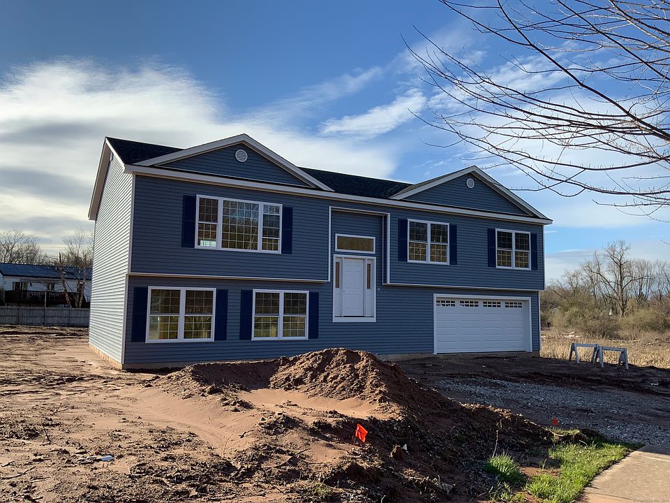 New construction 3450 square foot split level 5 bedrooms 3 full bath his and her sinks walk in closets 8 Island with white shaker cabinets w/ crown molding and granite countertops stainless steel appliances wood flooring up vinyl flooring down laundry room 12x16 deck upper level lower level huge concrete patio skylight 95% efficiency furnace and tankless water heater 2 zoned heat and central air 2 car garage.
