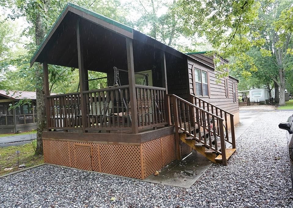 Discover your own piece of paradise at Paradise Valley Campground! Immerse yourself in a world of enjoyment, camaraderie, and the charm of North Georgia Mountain towns and festivals. Indulge in trout fishing or unwind by the tranquil flowing creek, embraced by the beauty of this rustic mountain retreat. The community offers a Clubhouse for gatherings, a pristine pool for relaxation, and an expansive outdoor cooking deck for culinary adventures. Throughout the year, a vibrant array of events awaits you, from Golf Car parades and lively parties to cookouts, bingo nights, card games, and delightful potluck gatherings. Beyond the community's borders, the local towns host a rich tapestry of festivities including Gold Rush Days, OctoberFest, Garlicfest, Cumming Fair, Fall Music celebrations, Georgia Apple Festivals, the Helen Balloon Race, and an assortment of other engaging experiences. This deeded property comes with hardwood floors and a charming park model cabin, with ample space for an additional camper. Whether you're seeking a full-time abode or a winter escape for Florida campers, this retreat beckons as your home away from home. The cabin's expansive porch offers panoramic views of the meandering stream, creating an idyllic backdrop for relaxation. Step inside to discover a remarkable living room and dining room area, exuding spaciousness and comfort. Ideal for family gatherings or leisurely television moments, this area invites you to unwind and create cherished memories. Progressing further, the open-concept kitchen delights with its abundance of cabinets, making meal preparation an enjoyable endeavor. Ascend the stairs adjacent to the kitchen to reach the loft, a haven where grandkids can play and slumber. The living room's railings afford a glimpse into this enchanting space. The bathroom encompasses a full bath/shower, a stylish vanity, and a convenient closet. The master bedroom, resembling a charming log cabin, offers ample space for a king-size bed flanked by two nightstands. Walk-in closets grace one wall, providing room for your clothing and personal items, alongside built-in chest of drawers and a second integrated television. This property is more than a mere cabin; it's an invitation to embrace the serenity and joys of Paradise Valley Campground fully. Paradise is a seasonal living vacation community, so NO FULLTIME LIVING available.