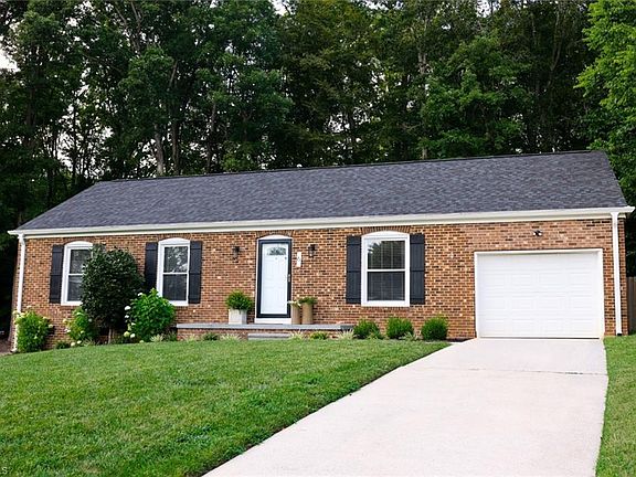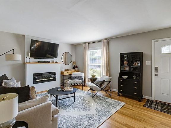 *Offers due Sunday, 9/3 by 5 p.m.* You’ll absolutely fall in love with this adorable, move-in ready home! With updated kitchen and baths, refinished hardwoods, fresh landscaping and a beautiful green lawn, all you have to do is schedule the movers! The cozy living room with an electric fireplace welcomes you in the front door. A shiplap accent wall and built-in banquette seating creatively set apart the dining area from the bright, white kitchen. All three bedrooms have well-organized closets, and the primary bedroom connects to its own half bath that shares access to the main hall’s full bath. Current laundry set up accommodates a full-size washer/dryer, with the washer in the kitchen closet and dryer in the garage, but the kitchen closet should accommodate a stackable, ventless washer/dryer. Enjoy mornings and evenings outside on the covered patio looking into the large fenced backyard and woods beyond. This home is so sweet!