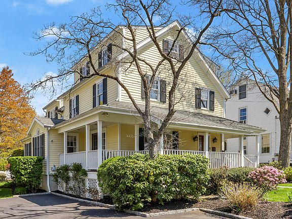 Starting at the from porch w/views of Binney Park, close to the library, Village, train and near the beach, this home offers a great location to many Old Greenwich amenities. The L/R and large D/R lend to nice gatherings w/a built-in pantry area w/wine fridge between the D/R and large family room with fireplace. Eat-in kitchen w/custom cabinetry, double ovens, Bausch dishwasher, Monogram fridge and gas cooktop. On the second floor there is the Master with walk-in closet and updated bath. Two more family bedrooms and hall bath updated w/steam shower. The third floor offers a large office with many built-ins and another family bedroom and full bath. Lower-level playroom/media room has nice space. New HVAC, large deck, sound system inside & out and a very private back yard.