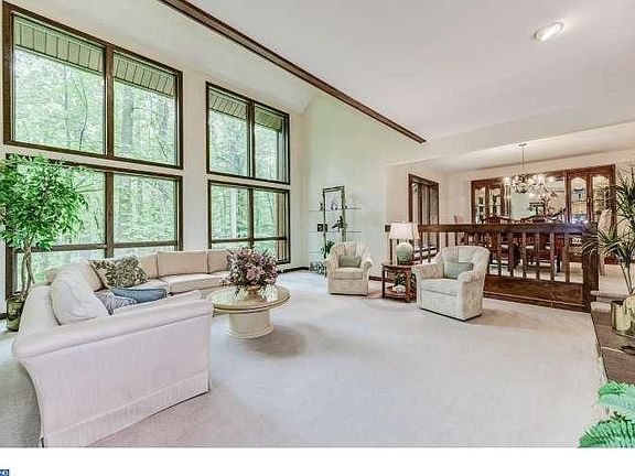 This Absolutely Beautiful, Custom, Stone & Cedar Contemporary has been meticulously maintained by the Original owners. This Spacious home offers an open floor plan and features a 2-story foyer w/ turned staircase, a Lovely First-Floor Master Suite w/ updated master bath, lots of closet space & sliders leading to the read deck. The big, sunken, Living room has 18ft Ceilings, a wall of windows overlooking the plush front yard , and an amazing Double sided, Stone Fireplace that also serves the family room on the other side. The updated Kitchen boasts Beautiful 42" glazed ,antiqued, cabinets with crown molding hand-made by the Pennsylvania Dutch, tiled backsplash, beautiful countertops, double sink, Hardwood floors & more..There is also a bright & open Dining Room off of the kitchen. A 12 x 12 main floor office w/ double doors is located off the foyer, and a 4 season sunroom off the family room w/ skylights & sliders leading to the rear deck. Upstairs, there is a spacious loft area w/ built-in bookcases and endless possibilities along w/ 3 addtl' bedrooms, and another full bath. other features of this Great home include Andersen Windows throughout, new HVAC(2012), new roof(2011), a big main floor laundry room w/ double closets, a mud room, and an oversized, 2-Car turned garage. SELLER IS OFFERING A $5000 CARPET ALLOWANCE FOR THE LIVING ROOM AND DINING ROOM CARPET THAT HAS FADED!!