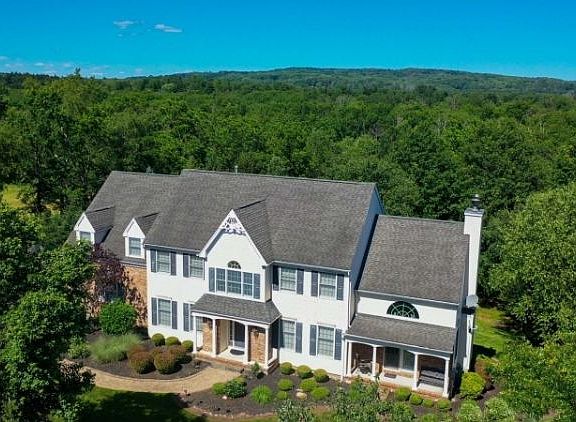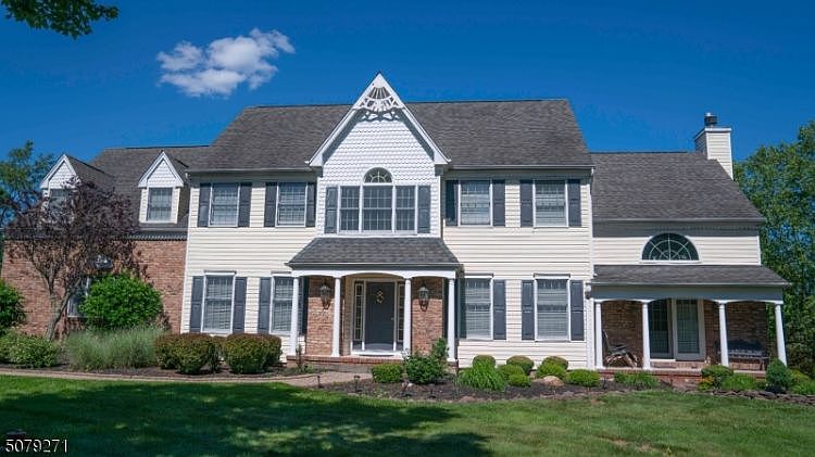 This Stanton Meadows home is set on a stunning backdrop of open land, with 1.53 acres of lawns and gardens that are adjacent to a 31 acre farm and 24 acres of forested County land. Colonial style creates a charming home that invites entertaining, including formal living and dining rooms w crown moldings and wood floors. An impressive space, the family room features skylights, a brick FP that soars to 24' ceilings, and access to the front yard and rear deck. The adjoining kitchen is inviting, w granite counters and SS appliances. Four bedrooms are filled w upgrades: 2 feature 11' ceilings, 3 have walk-in closets, and the master offers 15' ceilings and an ensuite w jetted tub and an updated shower w built-in bench. A partially finished walkout basement opens to a paver patio. Nearby Hunterdon Central High is a Blue Ribbon School.