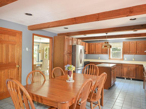 In the lovely neighborhood of Great Hills, just off the East Sandwich exit for Rte 6, find this large garrison colonial sporting 4 bedrooms all on the second floor including the primary ensuite. First floor provides 5 rooms, a front to back living room, with an office off of it. A kitchen that runs the width of the house just meant for gathering friends and family and cooking to your hearts delight. A formal dining room and a family room with a stone fireplace which is a beautiful focal point in the room, complimented by a beamed cathedral ceiling, shining wood floor and access to the deck through a gliding slider. The laundry accompanies the half bath on this floor. The basement with lots of storage shelving to keep your life organized, and a finished room perfect for a rec room plus an oversized 2 car garage under round out the space in this house. On a half acre lot of mature plantings, you'll enjoy your out of doors spaces here too!