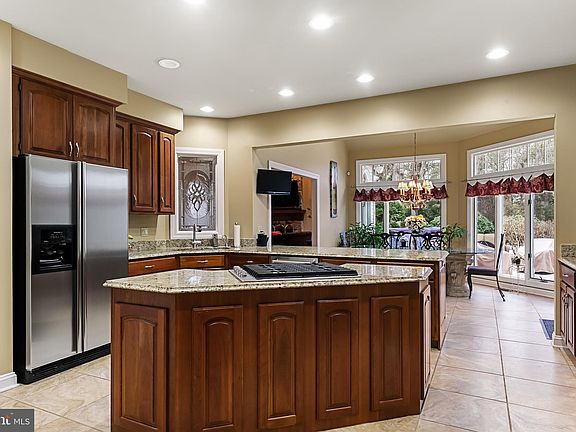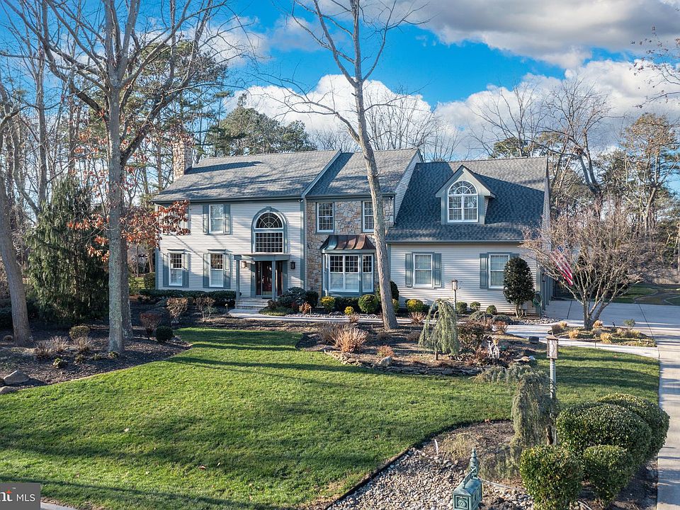Welcome to the pinnacle of refined living in this exceptional custom-built colonial, situated on a private 3/4-acre cul-de-sac lot. From the moment you step into the grand foyer, you'll be enveloped in the timeless elegance and thoughtful design that defines this residence. The living room, adorned with a gas fireplace, beckons you to unwind in its warm embrace. The main level, thoughtfully crafted for convenience, features 1 1/2 baths and a main floor bedroom that could easily serve as an in-law suite, offering versatility and comfort for multi-generational living. The family room is a masterpiece with cathedral ceilings and a wood-burning fireplace, the focal point of the room with its floor-to-ceiling stonework. Throughout the home, custom woodwork and moldings and scraped Brazillian Cherry flooring add a touch of sophistication to every corner. The bright and sunny kitchen is a chef's delight, boasting granite countertops, double stainless wall ovens, an island, and a breakfast bar. A huge breakfast room provides the perfect setting for casual dining, while a large dining room is ideal for hosting formal gatherings. Ascend the front or rear staircase to the upper level, where you'll find four generously sized bedrooms and three full baths. The primary bedroom is a luxurious retreat with vaulted ceilings, a huge walk-in closet, and an ensuite bathroom. The second bedroom also enjoys its own private bathroom, adding to the overall comfort of the home. The upper-floor laundry room with a folding station adds practicality to your daily routine. The fully finished basement provides additional space for entertainment or relaxation. A three-car side-entry garage ensures ample parking and storage space. With 2-zone heating and air conditioning, your comfort is assured year-round. This home boasts a brand-new 50-year roof, ensuring durability and peace of mind for years to come. Step into the expansive backyard, which is both large and fenced, offering privacy and security. Beautiful landscaping surrounds an in-ground heated saltwater pool and a tranquil koi pond. An outdoor oasis awaits, complete with a convenient half bath by the pool, a pool house ready for a washer, dryer, and refrigerator and a section with furniture storage and a sink. Travertine tile graces both the front and back of the house, while outside LED lighting, poolside speakers, an outdoor camera, and gutter guards add the finishing touches to this exceptional property. Welcome to your dream home, where luxury and functionality converge in perfect harmony.