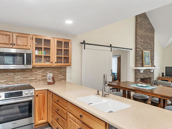 Easy Living in the Lakes Region! This free-standing single-family condo in Wolfeboro Common II offers the best of both worlds - a private home with the benefits of association membership including lawn care, plowing, trash removal and exterior maintenance which gives you more time to enjoy life. Located at the end of a quiet road, this one-level Cape features a spacious entryway that opens into the kitchen which flows into the open-concept living and dining area. A soaring cathedral ceiling and a wood-burning fireplace add warmth and charm to the spacious, beautifully maintained interior. The layout also includes a primary bedroom suite plus a guest bedroom suite, a den or office space, and a four-season sunroom. Step outside onto the large deck that leads to a back yard patio, perfect for summer BBQ's and entertaining in a private and serene setting. The full basement offers plenty of storage and room to expand, and the attached two-car garage adds even more convenience. Numerous improvements within the past 2 years include new plank flooring and carpeting, interior painting, all new appliances, a new foyer closet and coat nook, a 4 ft. barn-style door between the living room and office, new LED lighting and window treatments - the list goes on. Located just minutes from downtown, come see how simple and comfortable Wolfeboro Common living can be in the "Oldest Summer Resort in America".