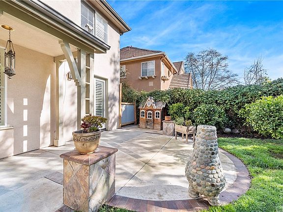 Gorgeous Cul de Sac home now available in Flintridge! Walk to Chaparral Elementary in minutes from this amazing 4 bedroom +den, 3 full baths with nearly 2500 sqft. A spacious Great room with dual brick fireplace is adjacent and open to the gourmet kitchen and breakfast nook. A downstairs den with views to the yard serves as a nice play room, office or potential 5th bedroom with it's own en-suite bath. The remodeled kitchen will not disappoint inclusive of new countertops, backsplash, cabinetry and fixtures. Highlights: epoxy coat pipes, paid solar, new flooring, recessed lights, plantation shutters, French doors & more! Upstairs features crown moldings, built-in desk niche, 3 large secondary bedrooms, laundry and the secondary bath with dual sinks. The comfortable Master suite includes his & her closets, soaking tub and a separate shower. A prominent backyard displays mature citrus tree's, a spacious grass area and custom hardscape for entertaining. Amazing Location set near the end of the cul de sac with a short walk to the Town Green, Chaparral Elementary School and the several pool's, park's and walking trails in Beautiful Ladera Ranch